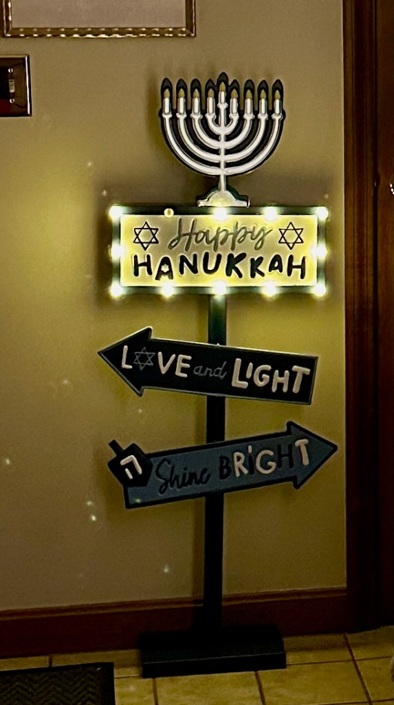 It’s that time of year when I drag the 3-foot metal Hanukkah sign out of our attic, along with many other Hanukkah bins.