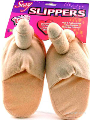 | I couldn’t find the antlers, but there’s a large selection of penis slippers. |