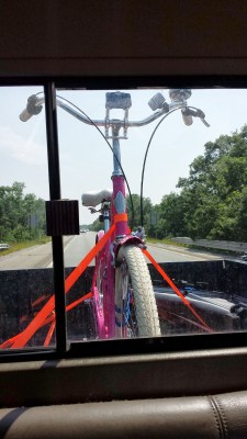 My boyfriend has a pickup truck and I imagine we’ll just toss the bike in the back. I haven’t given it too much thought. We stop at Home Depot on the way to buy some tie-down straps. He tells me,