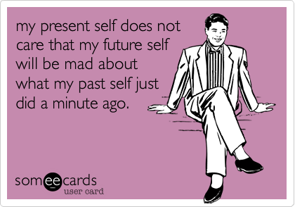 Future Jessica? I was 26-years-old, there was no future Jessica. Now there is a future Jessica and she does mind paying, but I forgive past Jessica. And maybe someday all the Jessicas will get their act together.