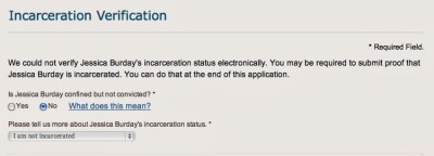 “You may be required to submit proof that Jessica Burday is incarcerated.”