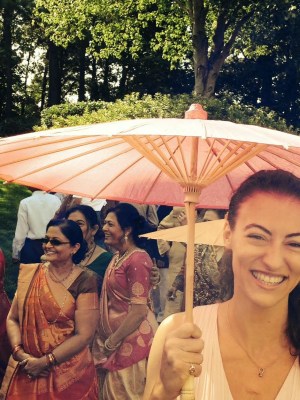 We head to the ballroom for the wedding. There’s a juice box and a bag of trail mix on everyone’s seat. One of Captain’s coworkers who is originally from Nepal tells me,
